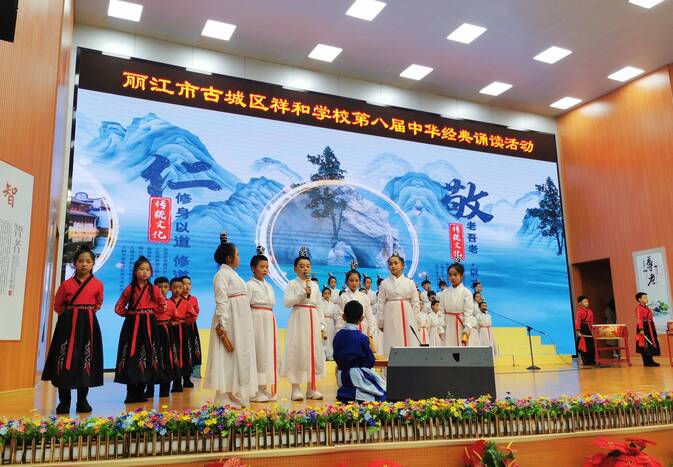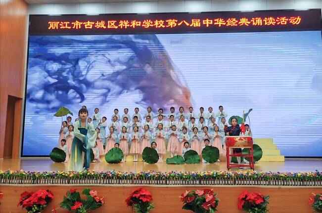 當(dāng)天,古城區(qū)祥和學(xué)校舉辦了以“喜逢華夏盛世 共誦國(guó)學(xué)經(jīng)典 庚續(xù)中華文脈 傳承優(yōu)秀文化”為主題的第八屆經(jīng)典誦讀展演活動(dòng)?;顒?dòng)中,參與展演的學(xué)生們誦讀了《三字經(jīng)》《盛世少年誦經(jīng)典》《中華頌》《中國(guó)脊梁》等國(guó)學(xué)經(jīng)典。他們身著漢服,詩(shī)詞與音樂(lè)、舞蹈融為一體,用真摯的情感、慷慨激昂的語(yǔ)言,誦讀著膾炙人口的經(jīng)典名篇。整場(chǎng)活動(dòng)精彩紛呈、各具特色,帶來(lái)一場(chǎng)“星光璀璨”的視聽(tīng)盛宴。