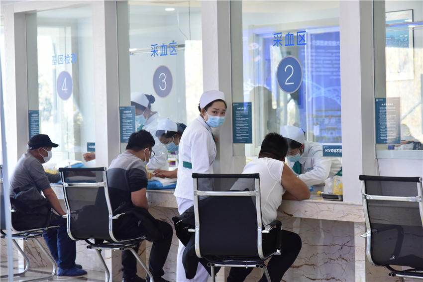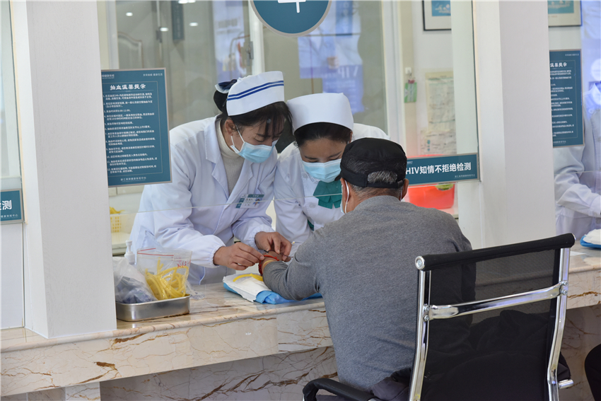 現(xiàn)場(chǎng)除了專(zhuān)家義診,還開(kāi)展了免費(fèi)量血壓、測(cè)血糖等檢查項(xiàng)目。