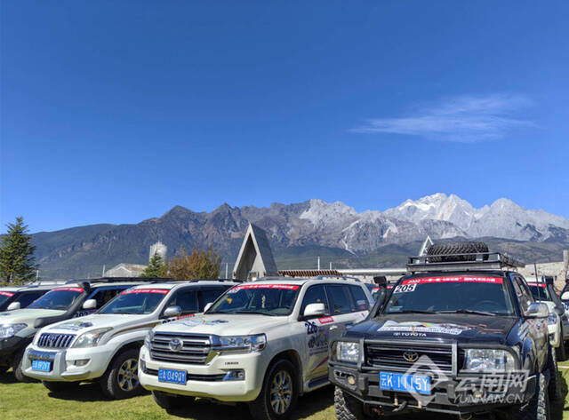 11月11日,第五屆“一帶一路?七彩云南”國際汽車?yán)愒谠颇消惤瓉硎讏黾Y(jié)賽事——SS1賽段玉龍雪山集結(jié)賽,35輛硬派越野車整裝待發(fā),全部參與。