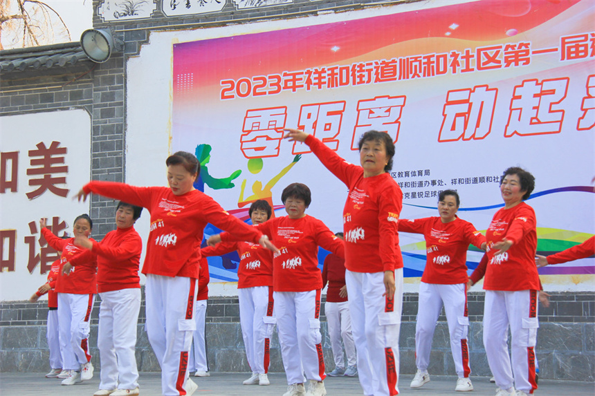 運動會上,來自南苑小區(qū)、祥和順天的舞蹈隊為大家?guī)黹_幕式表演。