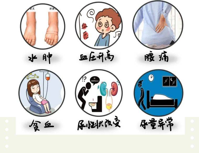 高血壓:高血壓也是腎病的常見的表現(xiàn),也就是說高血壓和腎臟關(guān)系密切,高血壓可引起腎病,腎病也刻印引起高血壓。