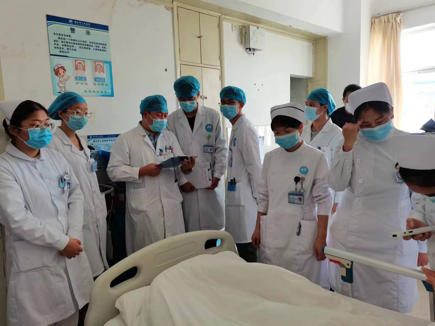 左三為麗江市人民醫(yī)院呼吸與危重癥醫(yī)學(xué)科副主任、主治醫(yī)師白成劍