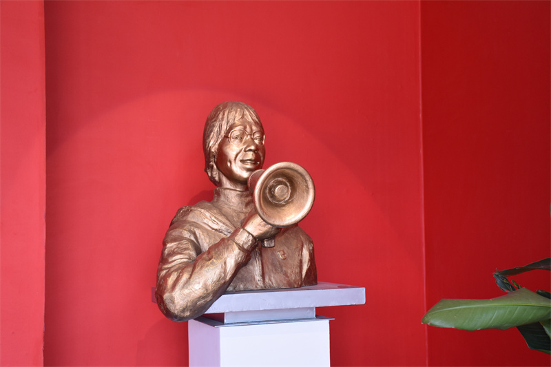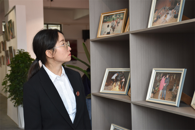 一進(jìn)展廳,張桂梅老師手持小喇叭的雕塑像就展現(xiàn)在大家眼前,瞬間腦海里回想起張桂梅老師拿著小喇叭在校園里忙碌的畫面。展廳的墻上、展板上都是張桂梅老師的照片,有和學(xué)生們在一起的,有獲獎的,也有她年輕時候的老照片。一張張照片仿佛時光機(jī)一樣,播放了張桂梅老師為教育付出的點(diǎn)點(diǎn)滴滴。