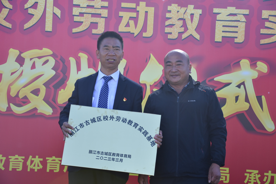 4月7日上午,麗江市、古城區(qū)校外勞動教育實(shí)踐基地授牌儀式在麗江現(xiàn)代花卉園區(qū)舉行。