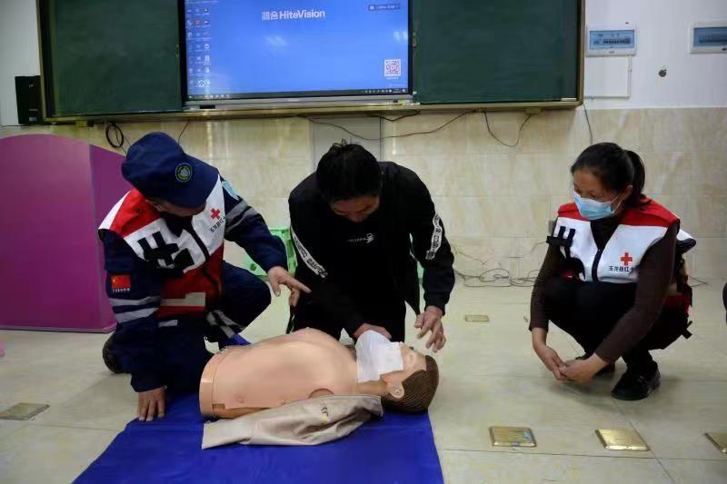 在宣講中,培訓(xùn)人員充分結(jié)合自身工作實(shí)際,通過PPT等方式向全校師生講解了防震減災(zāi)、防溺水、應(yīng)急救護(hù)等知識(shí)。針對學(xué)校地處金沙江畔,區(qū)域內(nèi)山川河流分布較廣的實(shí)際,培訓(xùn)人員詳細(xì)講解了防溺水的知識(shí)要點(diǎn)、溺水自救和急救方法等內(nèi)容,在培訓(xùn)人員的指導(dǎo)下,師生利用模擬人認(rèn)真練習(xí),反復(fù)體驗(yàn),基本掌握了心肺復(fù)蘇、應(yīng)急救護(hù)的操作手法,為以后工作和生活中正確處理突發(fā)情況打下良好的基礎(chǔ)。