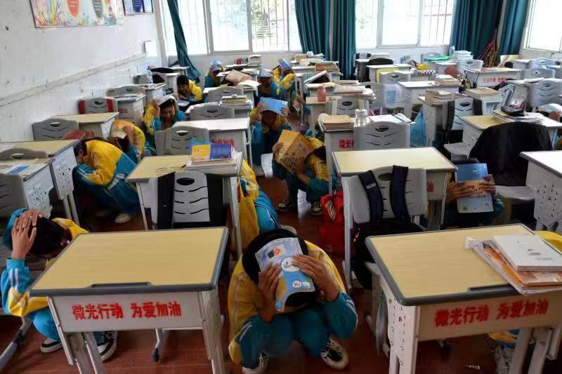 在防震減災(zāi)演練活動(dòng)中,當(dāng)演練警報(bào)聲響起,學(xué)生們在老師及培訓(xùn)人員的引領(lǐng)下,快速有序地撤離到操場上,整個(gè)演練過程快速、安全、有序?;顒?dòng)還向師生發(fā)放了地震預(yù)警知識(shí)宣傳冊。在消防安全演練中,培訓(xùn)人員還講解滅火器的使用方法、初期火災(zāi)撲救方法、應(yīng)急逃生方式等內(nèi)容,并現(xiàn)場指導(dǎo)師生使用操作滅火器。