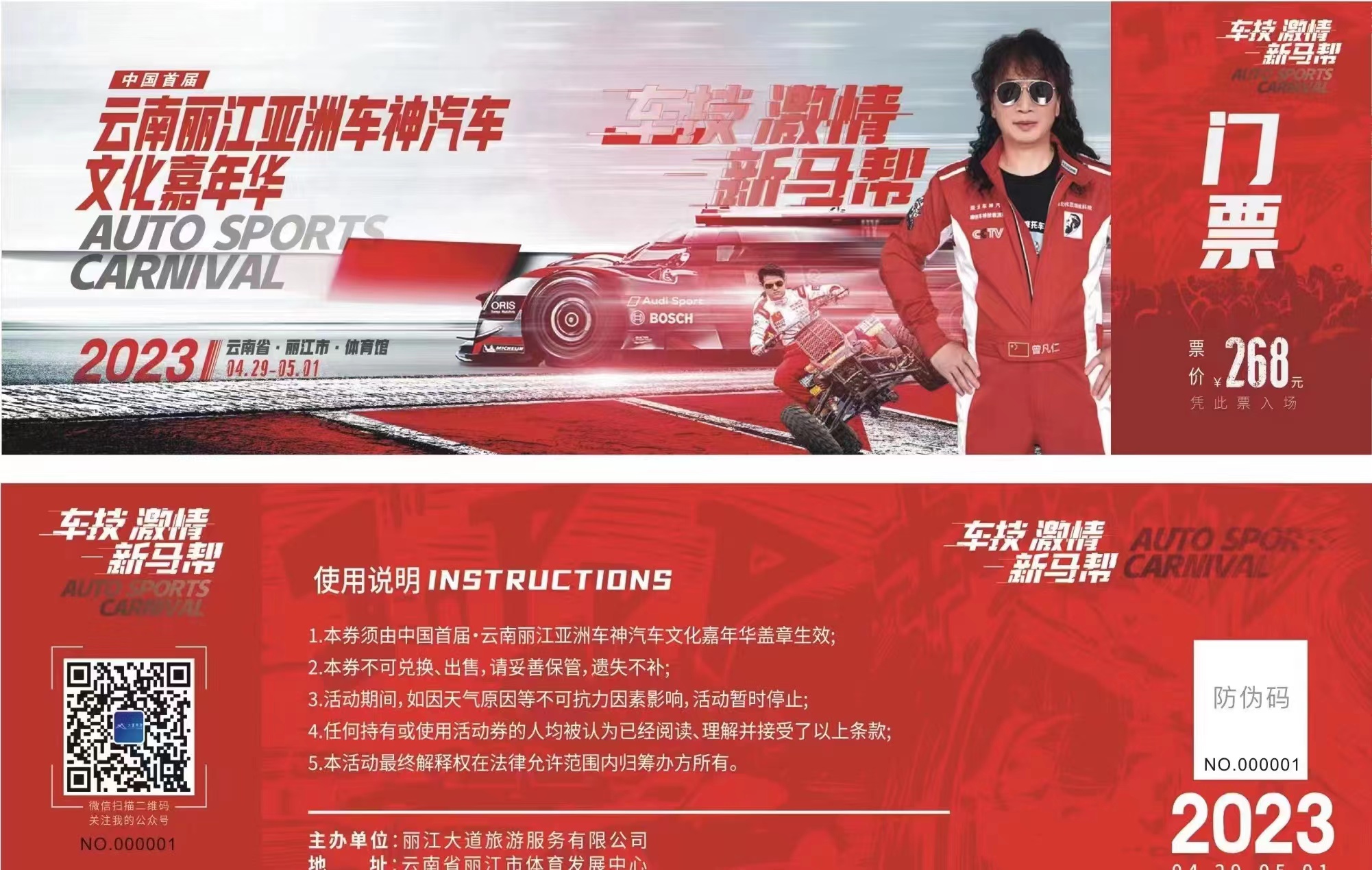中國(guó)首屆·云南麗江亞洲車(chē)神汽車(chē)文化音樂(lè)嘉年華通票268/張,線上大麥網(wǎng)購(gòu)票。