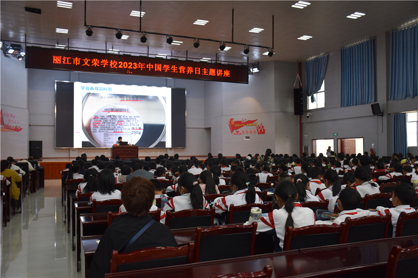 5月18日,麗江市2023年全民營(yíng)養(yǎng)周暨“5·20”中國(guó)學(xué)生營(yíng)養(yǎng)日主題講座活動(dòng)在文榮學(xué)校開展。文榮學(xué)校師生,古城區(qū)各中小學(xué)、幼兒園分管食品安全副校(園)長(zhǎng)共350人參加講座。