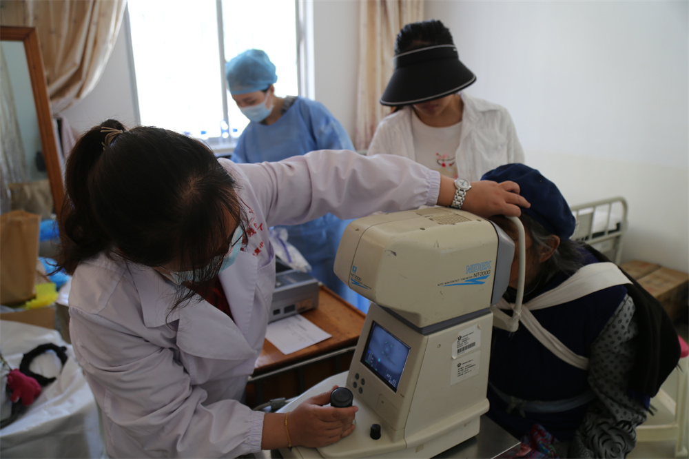 在玉龍縣巨甸中心衛(wèi)生院,報(bào)名接受手術(shù)治療的村民們?cè)谶M(jìn)行報(bào)名證件查驗(yàn)、社保卡登記等流程后,逐一進(jìn)行了白內(nèi)障初篩、眼部?jī)x器檢測(cè)、胸片、心電圖、血壓、血糖、血常規(guī)、免疫檢驗(yàn)等術(shù)前各項(xiàng)檢查。