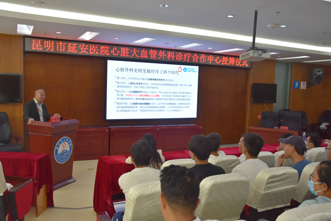簽約儀式結(jié)束后,昆明市延安醫(yī)院專家組成員開展學(xué)術(shù)講座,圍繞心臟大血管外科學(xué)科的建設(shè)、超聲心動(dòng)圖在二尖瓣病變?cè)\療的應(yīng)用,以及心血管內(nèi)科學(xué)建設(shè)等內(nèi)容進(jìn)行現(xiàn)場(chǎng)授課。