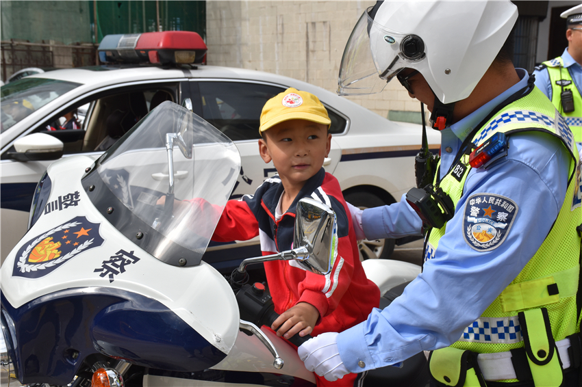 通過警官的介紹,小朋友們了解了警車、警用摩托、對講機、執(zhí)法記錄儀等警用裝備的用途,他們還坐上了警用摩托,當了一回“小交警”。