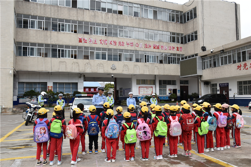 早上9點,轄區(qū)清溪幼兒園的小朋友們來到“一星級全國青年文明號”單位古城區(qū)公安局交警大隊西安中隊沉浸式體驗交警日常工作 ,交警大隊院內(nèi),早有等待好的警官和警用裝備。