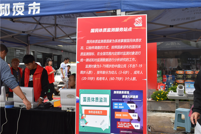 現(xiàn)場(chǎng)還設(shè)置了體育政策法規(guī)宣傳、體彩公益金宣傳、科學(xué)健身指導(dǎo)服務(wù)、青少年體適能訓(xùn)練指導(dǎo)、免費(fèi)國(guó)民體質(zhì)監(jiān)測(cè)5個(gè)服務(wù)站點(diǎn)。