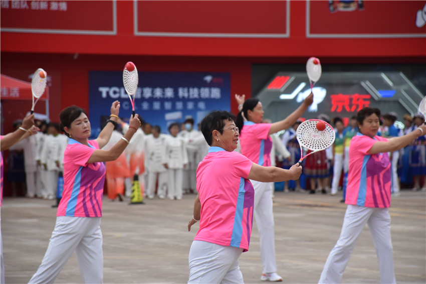 啟動(dòng)儀式上進(jìn)行了太極拳、體育舞蹈、柔力球、民族健身操、納西打跳等展演。