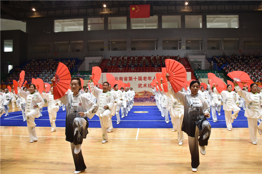 9月2日上午,云南省第十屆老年人健身運(yùn)動(dòng)會(huì)武術(shù)比賽在麗江開幕。來(lái)自昆明、玉溪、保山、麗江等19個(gè)代表隊(duì)近300名運(yùn)動(dòng)員參加比賽。