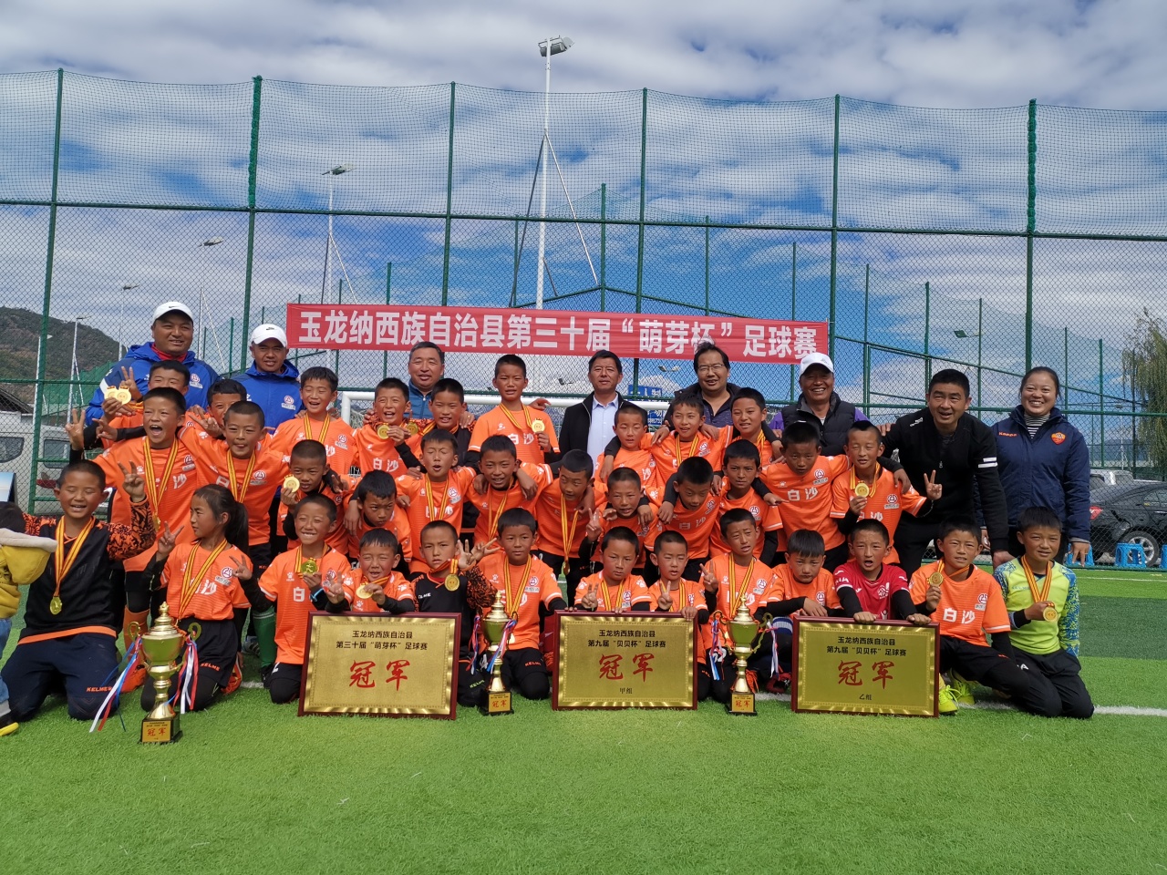 白沙完小先后在2013年1月獲得了全省足球錦標賽U11組全省第二名,U9組全省第三名的成績。2014年1月獲得全省足球錦標賽中U9組和U10組第一名。2015年在云南省青少年足球錦標賽中,分別獲得了U9、U11、U12組別的第一名,U10組第三名的好成績。2015年4月參加“與世界有約”斯凱孚杯全國足球邀請賽,獲第二名。2016年參加全國友邦足球邀請賽,榮獲冠軍。2016、2017、2018連續(xù)三年在云南省青少年校園足球四級聯(lián)賽總決賽中獲得第三名。2019年榮獲云南省青少年校園足球四級聯(lián)賽總決賽中獲得第二名。2010-2022年在玉龍縣“萌芽杯”足球賽中學校足球隊連續(xù)13年獲得“萌芽杯”第一名,連續(xù)多年榮獲“貝貝杯”甲組、乙組第一名。
