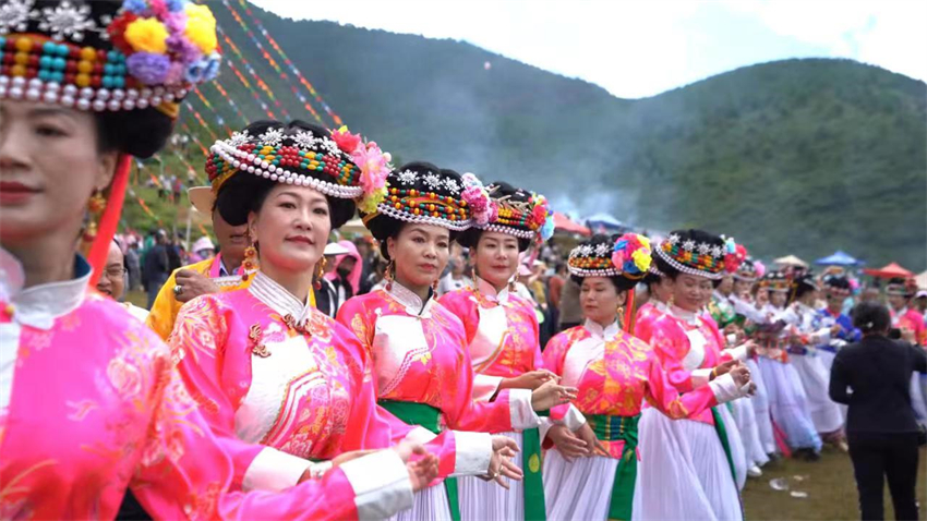 9月9日上午,摩梭兒女身著民族盛裝,從四面八方趕來,對格姆女神山進(jìn)行朝拜。祈福生活風(fēng)調(diào)雨順,平安順?biāo)臁?/p>
