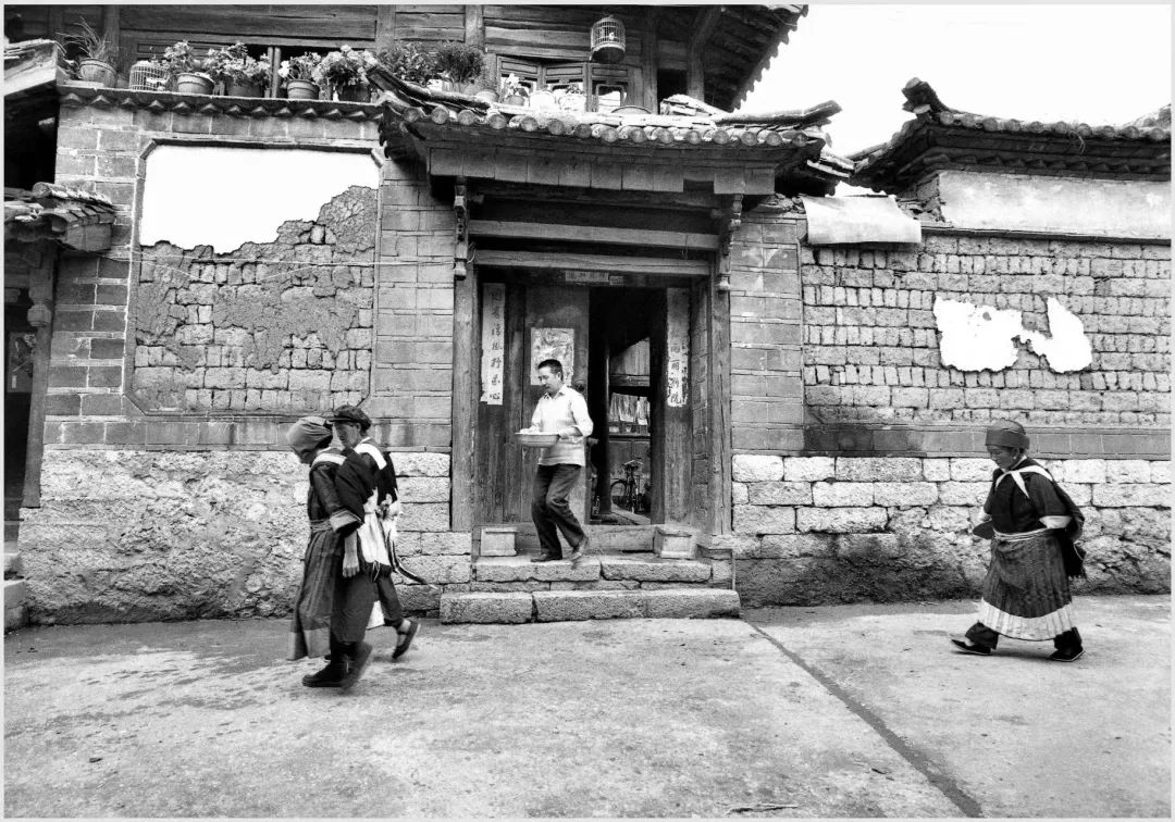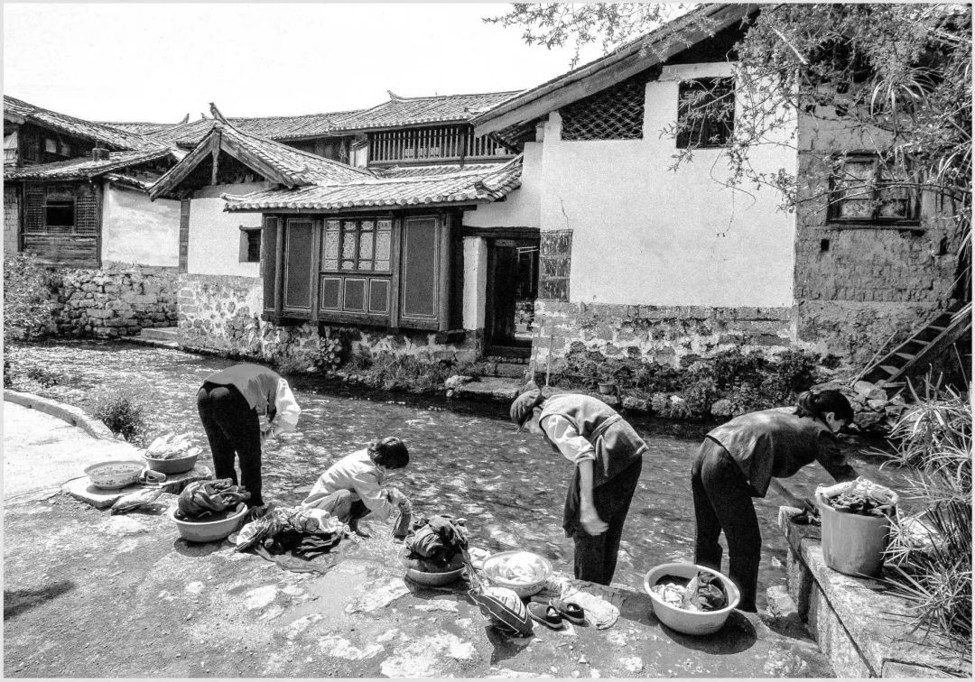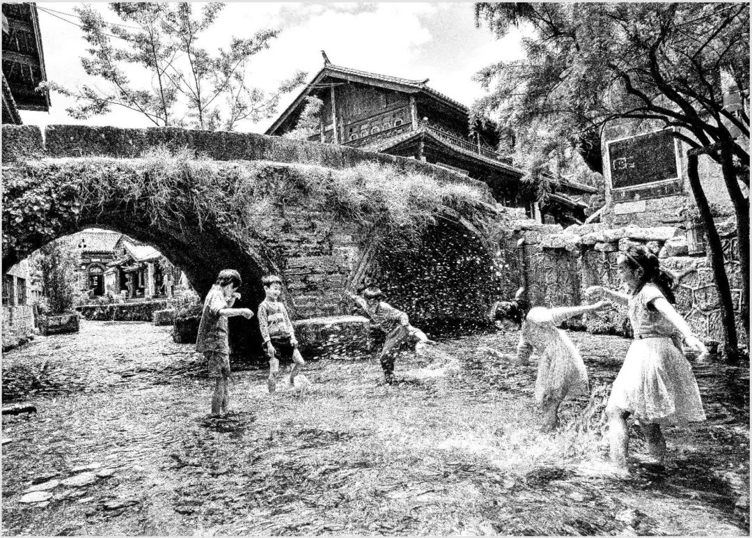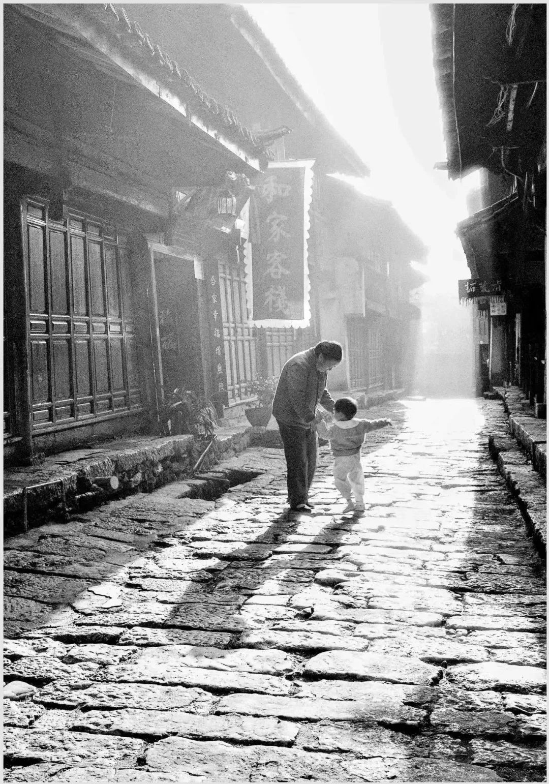 世界文化遺產(chǎn)麗江古城,是世人夢(mèng)想的心靈家園。展覽現(xiàn)場(chǎng),這組拍攝于麗江大研古城20世紀(jì)90年代的23幅黑白膠片作品著重展現(xiàn)了在麗江古城里生活的母親、女兒、親戚、朋友、鄰居,一梁一瓦、一草一樹、一河一橋、一街一巷,一把掛在阿奶腰間的鑰匙、一群在大石橋下戲水的孩子、一把放在小路中間“意味深長(zhǎng)”的竹椅……
