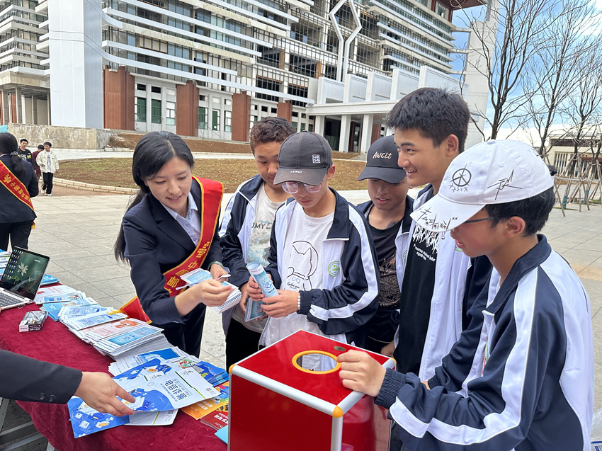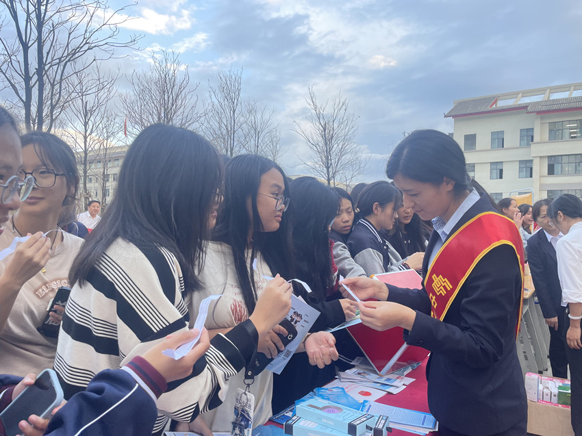 為深入學(xué)習(xí)貫徹習(xí)近平新時代中國特色社會主義思想,全面落實黨的二十大精神,切實提升社會公眾金融素養(yǎng),有效防范化解金融風(fēng)險,營造和諧健康金融環(huán)境,進(jìn)一步增強大學(xué)生金融防范意識、培養(yǎng)理性消費觀念。2023年9月26日,郵儲銀行麗江市分行以“匯聚金融力量 共創(chuàng)美好生活”為主題,聯(lián)合麗江市公安局反詐中心、中國農(nóng)業(yè)發(fā)展銀行麗江市分行、泰康人壽云南分公司、國泰君安證券前往麗江市職業(yè)技術(shù)學(xué)院開展豐富多彩的金融知識進(jìn)校園系列宣傳教育活動。
