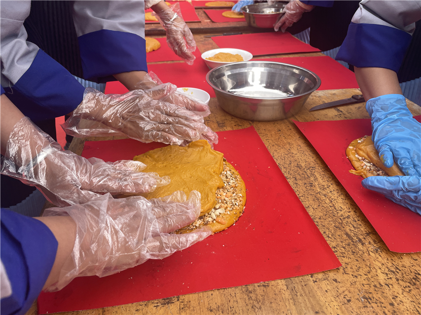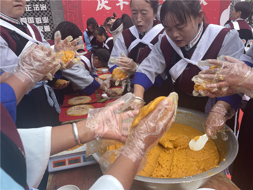 現(xiàn)場(chǎng)歡聲笑語(yǔ)、其樂(lè)融融。大家在制作納西傳統(tǒng)大月餅的過(guò)程中體悟佳節(jié)習(xí)俗的濃厚魅力,繼承傳統(tǒng)節(jié)日文化,歡樂(lè)祥和的氣氛感染著每一個(gè)人。