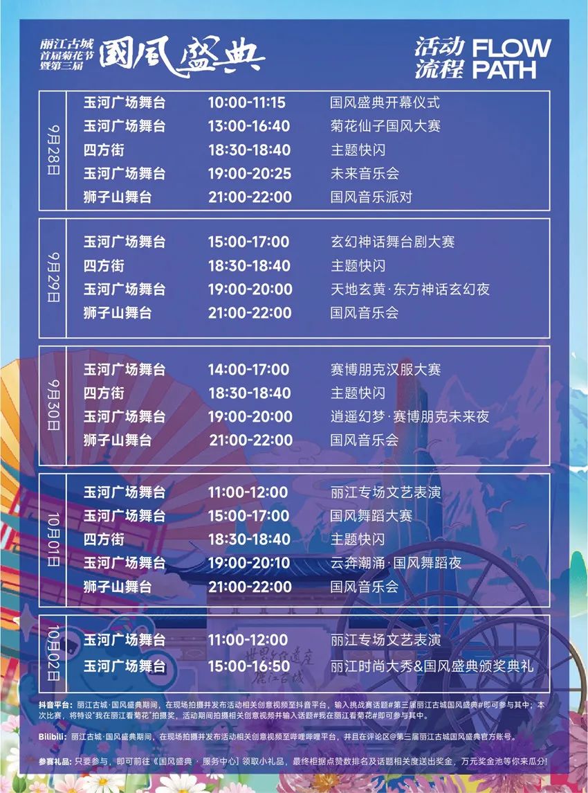 據(jù)悉,本屆國風(fēng)盛典不僅有知名動漫IP強(qiáng)勢亮相,助力麗江古城解鎖新國潮。接下來的5天時(shí)間里,更有菊花仙子國風(fēng)大賽、玄幻神話舞臺劇大賽、賽博朋克漢服大賽、國風(fēng)舞蹈大賽四大賽事輪番上陣,還有沉浸式劇情體驗(yàn)、街區(qū)快閃、華燈星光集市、舞臺劇等驚喜節(jié)目等你開啟。