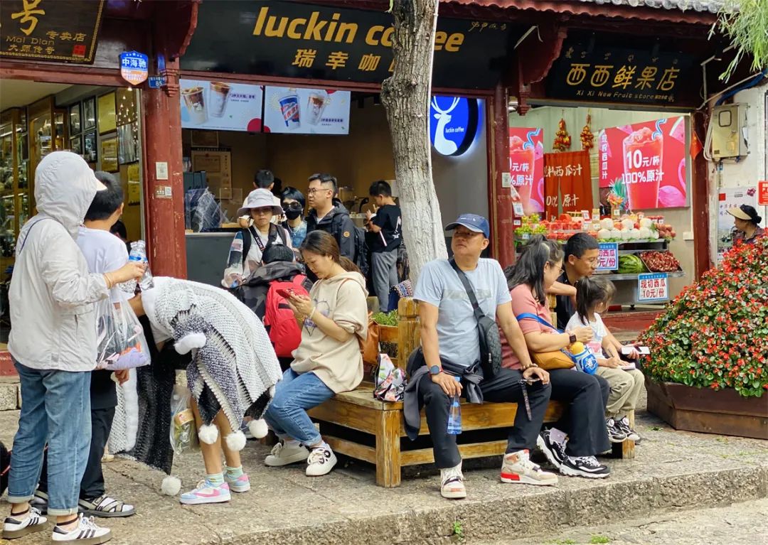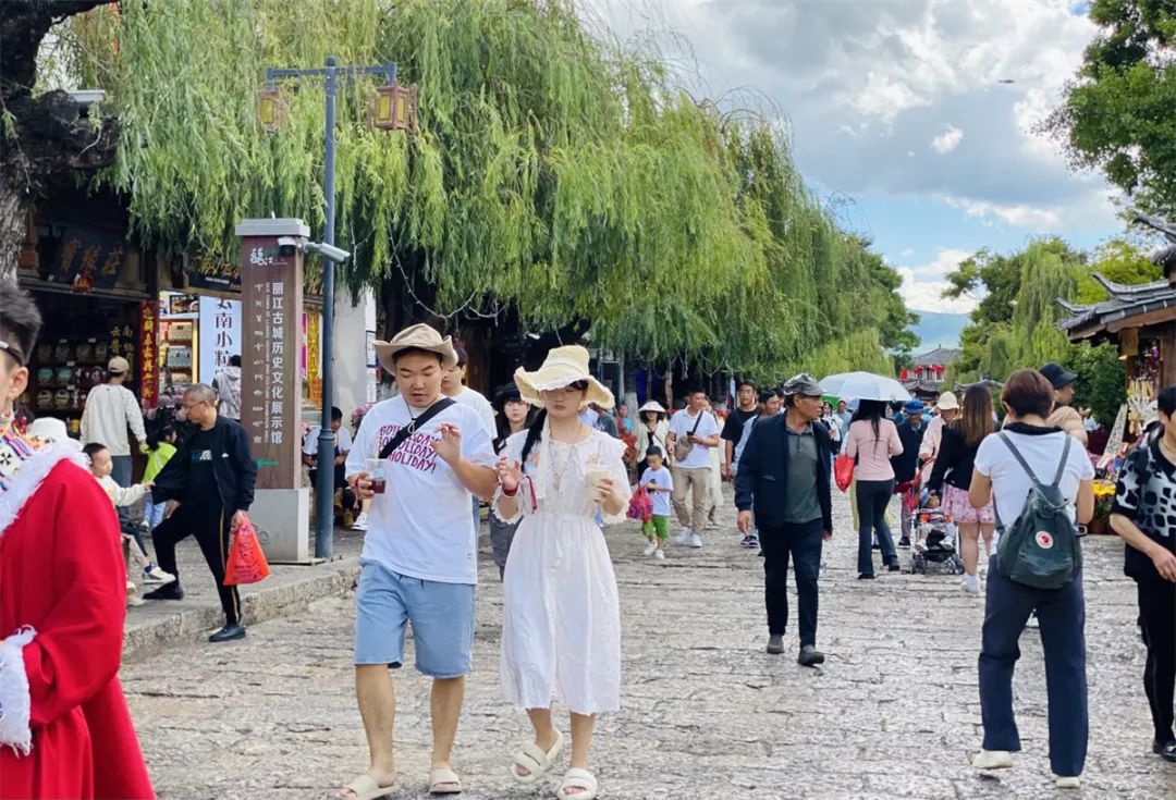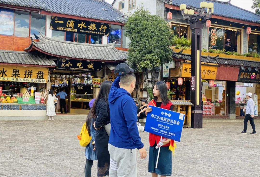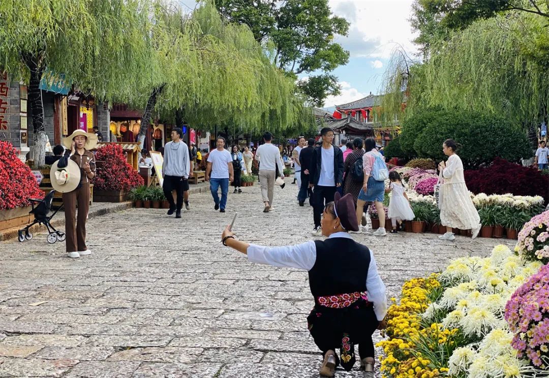 走進(jìn)麗江古城,記者注意到旅游志愿者、環(huán)衛(wèi)工作者在引導(dǎo)著旅游行為,而游客朋友們也能自覺做到文明游玩,文明便在安全有序的環(huán)境里、在愛花只拍花的行為里、在共同享用的公共座椅里、在遛狗牽繩的細(xì)節(jié)里……