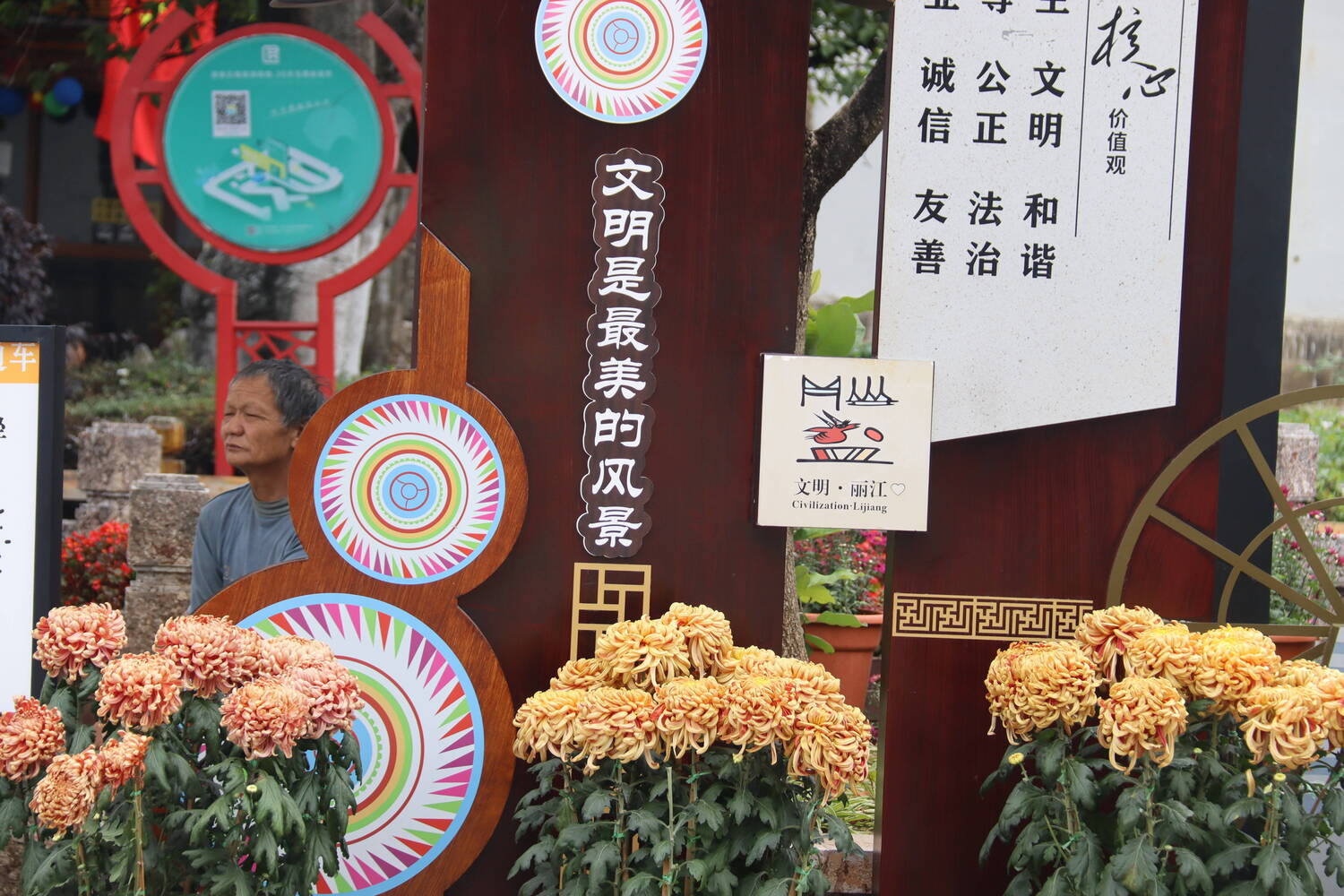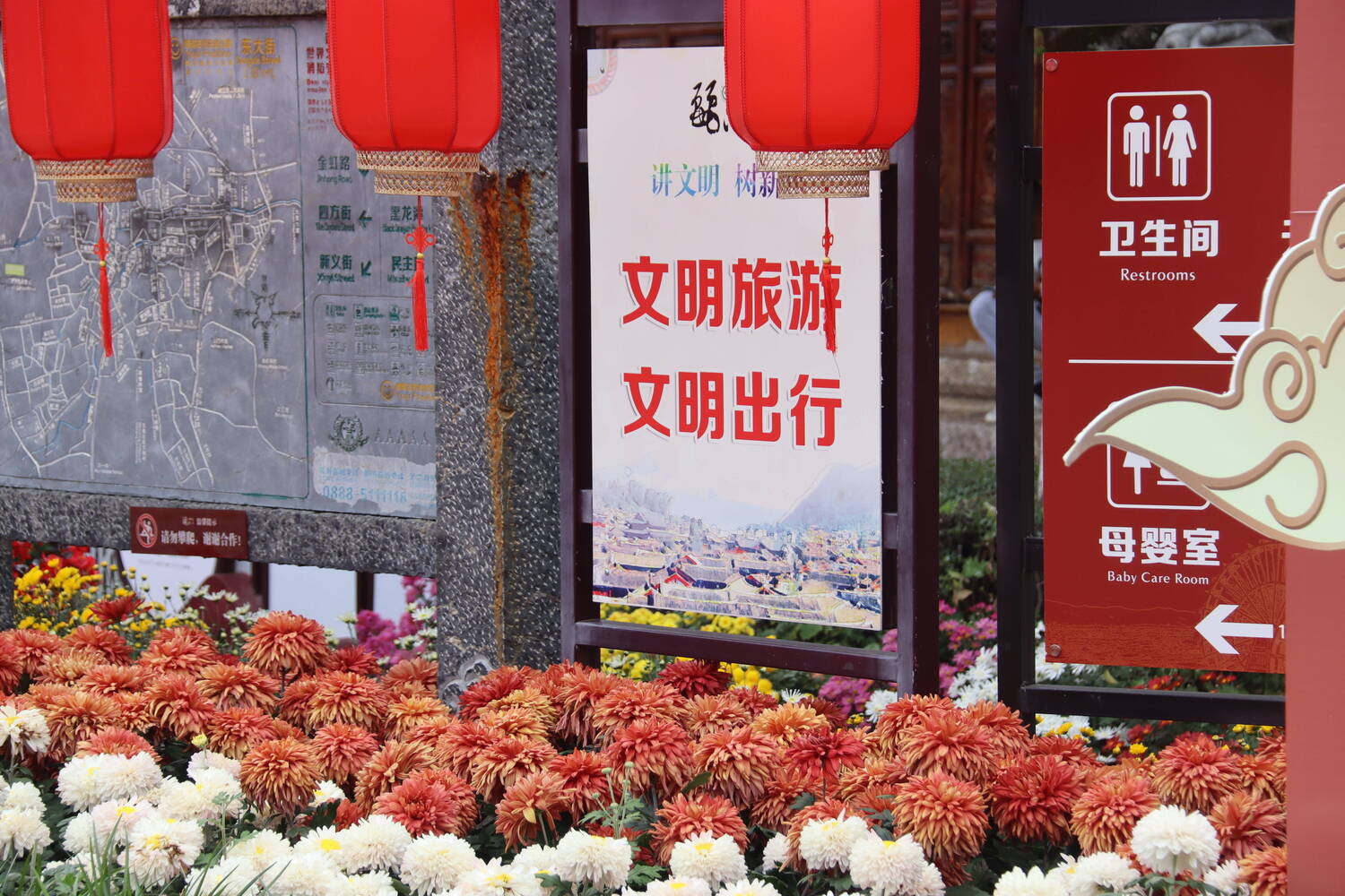 隨著文明旅游的深入宣傳,在眾多游客聚集的同時,景區(qū)內(nèi)文明有禮,不亂丟垃圾,自覺遵守景區(qū)秩序。古城道路兩旁的道路上擺放著盛開的菊花,不少市民游客都前往拍照合影,但也都能做到不采摘、踐踏花朵,共同維護景區(qū)的美麗風景。