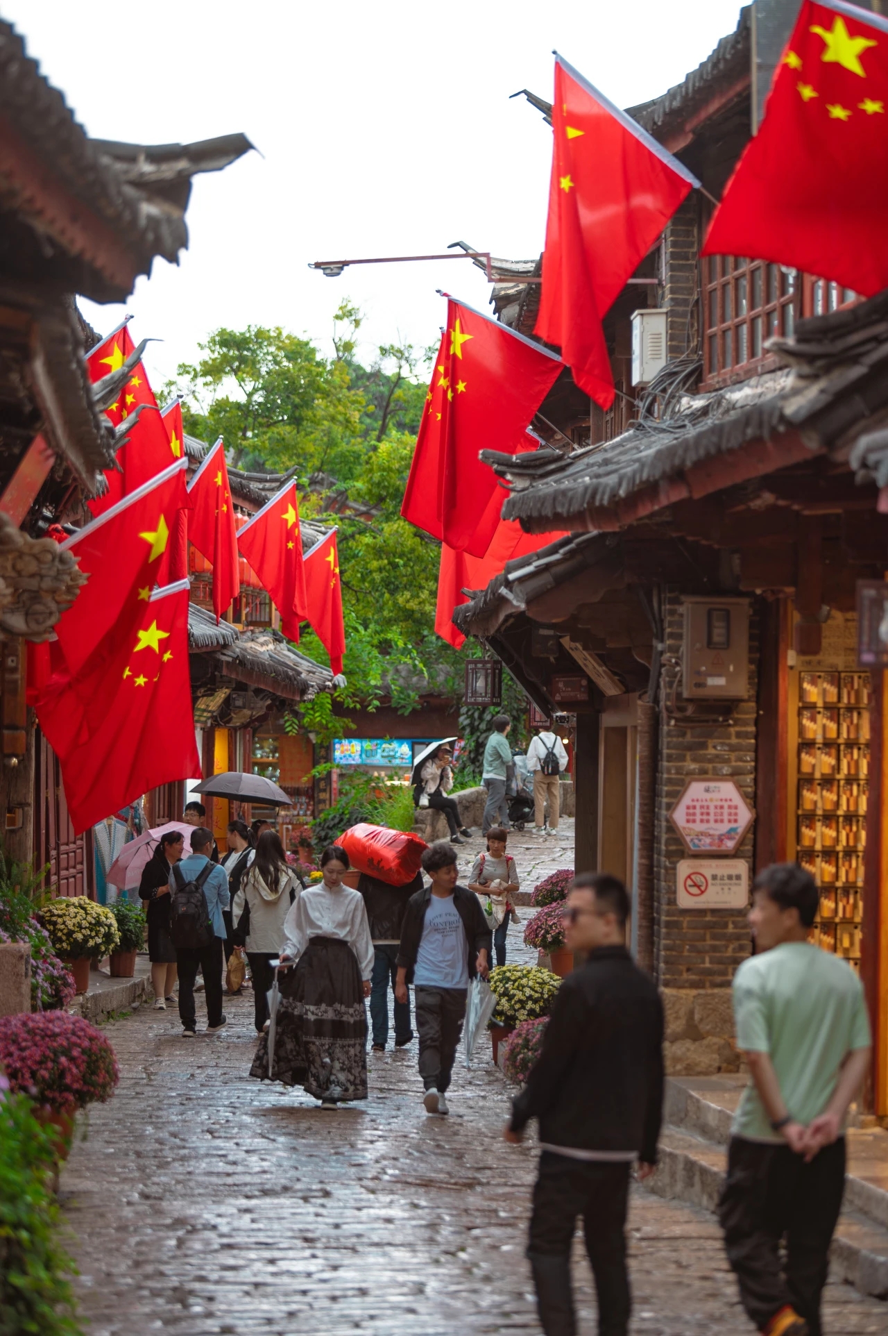 古城大街小巷里那迎風招展的五星紅旗,朋友圈中那一片飄紅合影,每一抹鮮艷的紅色背后,都是麗江人民對偉大祖國最深沉的愛,對祖國最美好的祝愿。