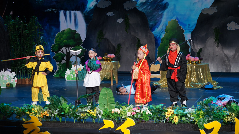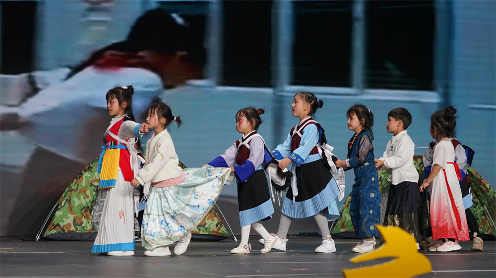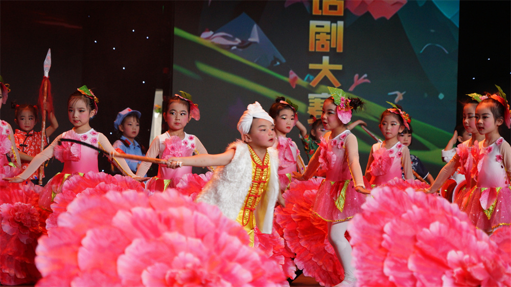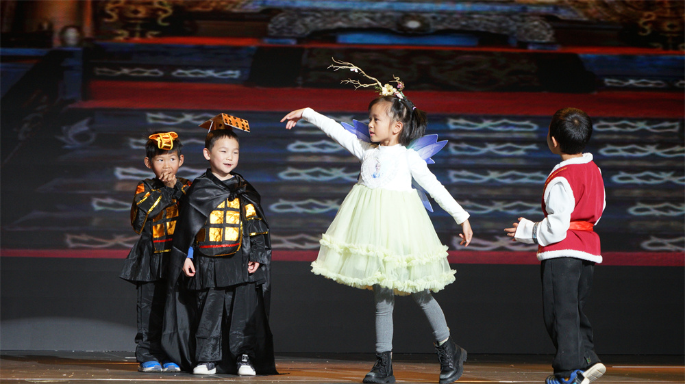 本屆幼兒園童話劇大賽參演幼兒233人,節(jié)目內(nèi)涵豐富、形式新穎,涵蓋傳遞真善美、綠色環(huán)保、愛國明理、緬懷先烈、致敬英雄等內(nèi)容?!秙al`ee ddiuq heeq和氣四瑞》《飄揚(yáng)的五星紅旗》《百鳥羽衣》《來之不易的書》……小朋友們用一聲聲稚嫩的童音將熟悉的故事搬上了舞臺,展示了一個(gè)個(gè)生動鮮活的角色形象。