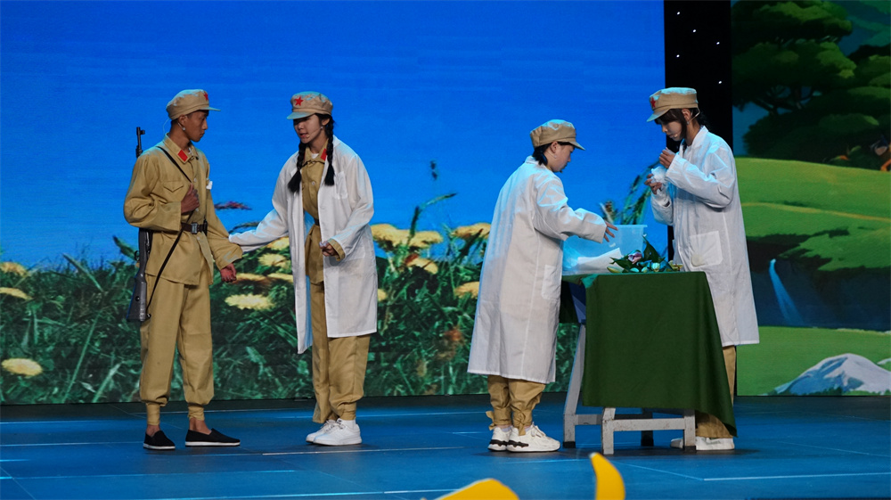 “整個編排過程都是以學(xué)生為主,我們老師再加以斧正。節(jié)選的是一個‘借被子’的片段,里面革命戰(zhàn)士的純潔友誼值得大家學(xué)習(xí)歌頌,也希望給廣大學(xué)生樹立正確的人生價值觀?!庇颀埧h一中教師田榮告訴記者。