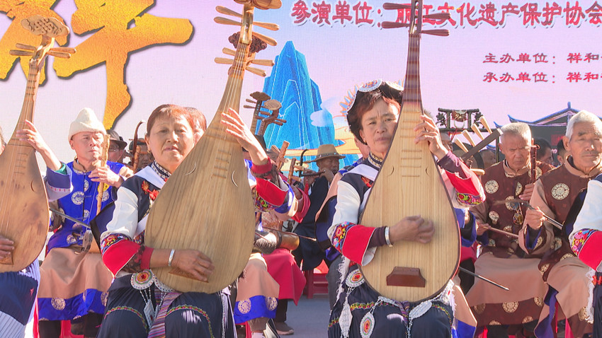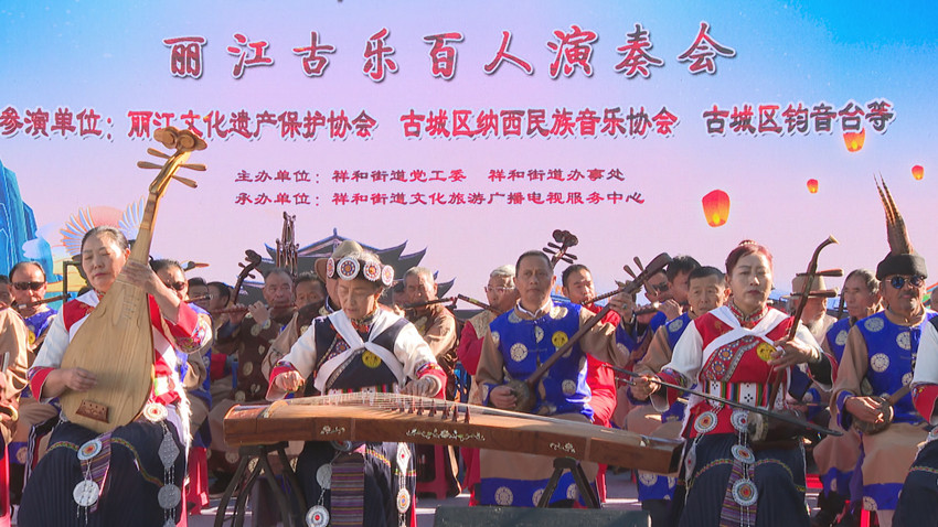 這是由古城區(qū)祥和街道黨工委、祥和街道辦事處主辦的第五屆“和樂祥和”城市文化節(jié)文藝匯演麗江古樂百人演奏會。來自麗江文化遺產(chǎn)保護協(xié)會、古城區(qū)納西民族音樂協(xié)會、古城區(qū)鈞音堂等百名樂手參加了演奏。