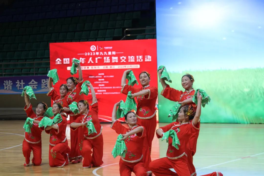 10月23日,2023年“九九重陽”全國老年人廣場舞交流活動在麗江市體育中心開幕。這是開幕式文藝表演。(麗江融媒記者 張小秋 攝)