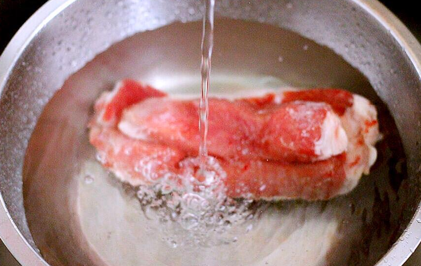 9. 在水龍頭下沖洗生肉