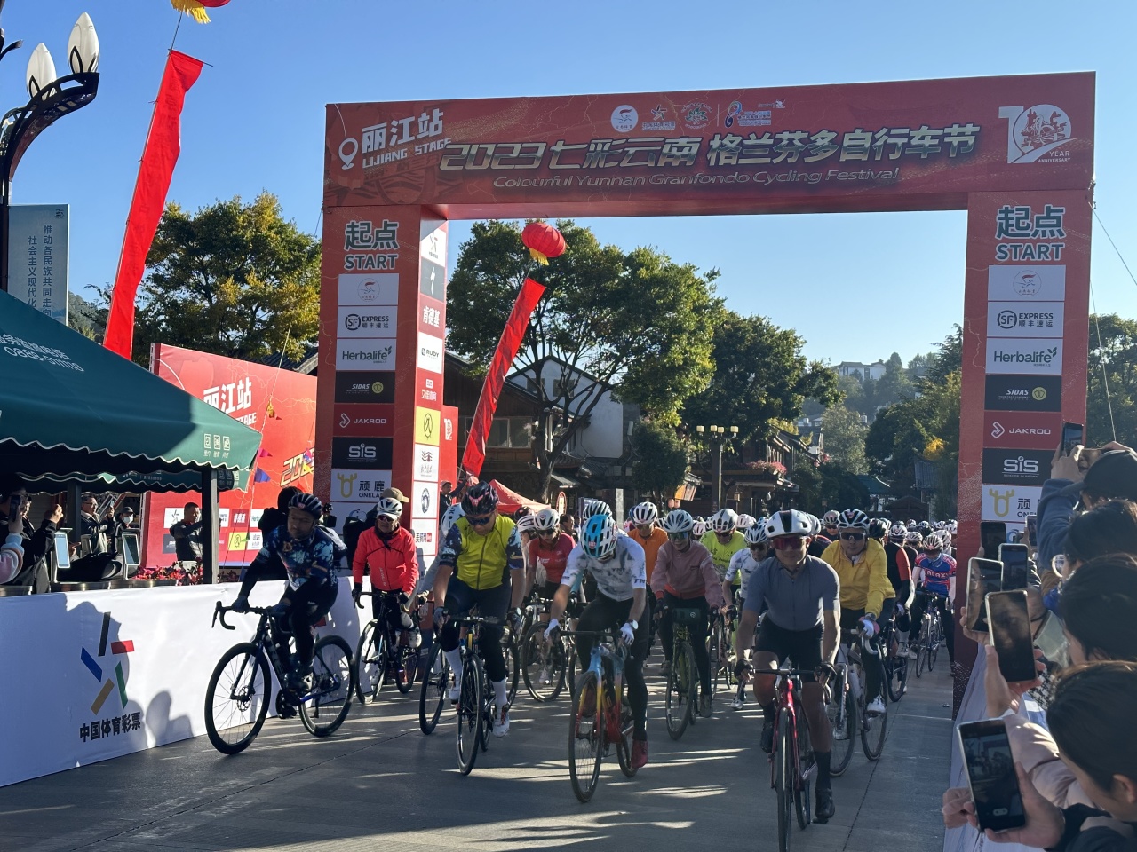 11月10日上午9:00,2023“七彩云南·格蘭芬多”自行車(chē)節(jié)麗江站比賽在麗江古城玉河廣場(chǎng)鳴槍開(kāi)賽。