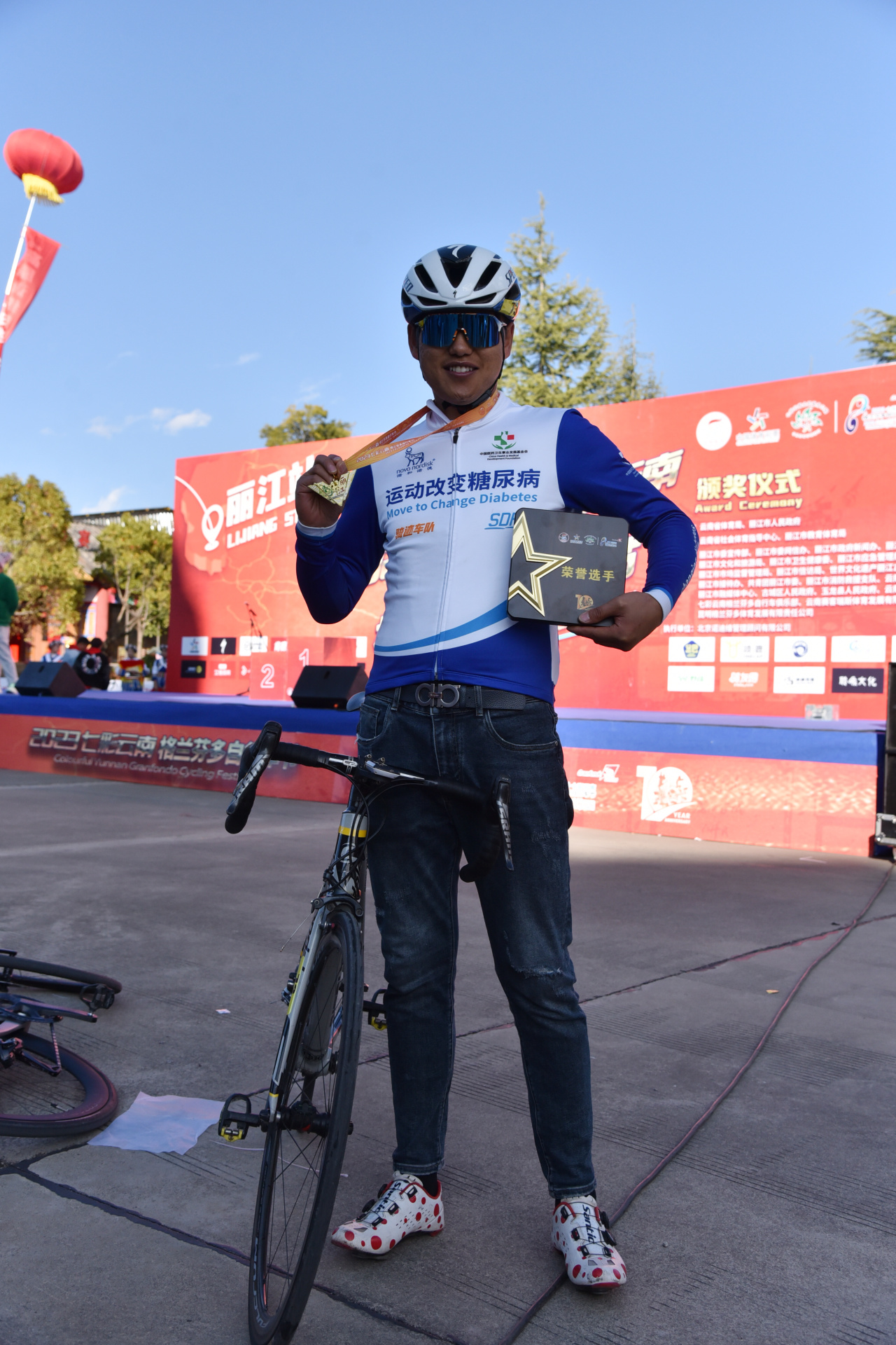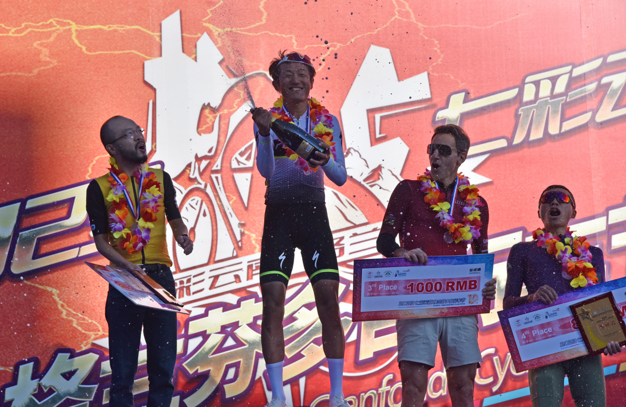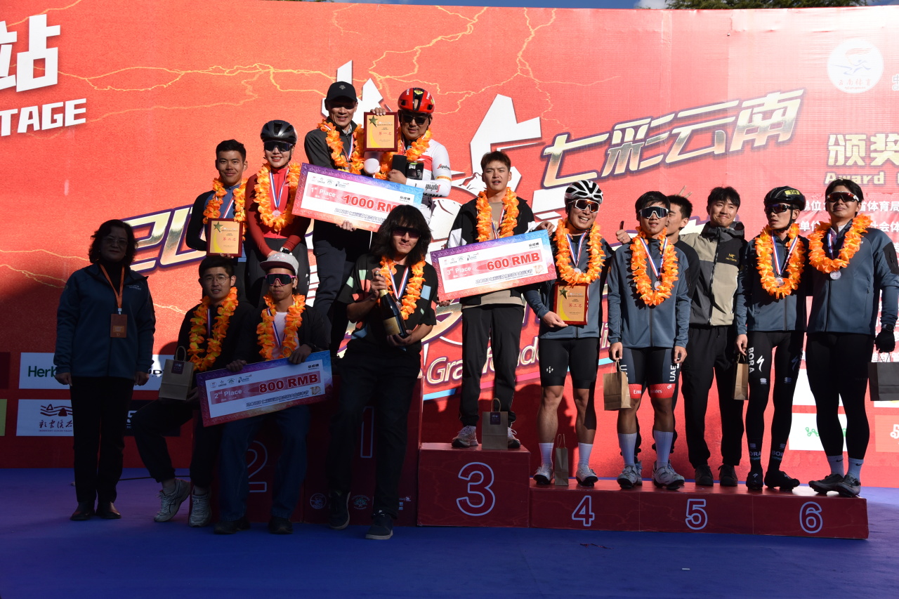 選手們的榮耀時刻。圖為2023“七彩云南·格蘭芬多”自行車節(jié)頒獎現(xiàn)場。