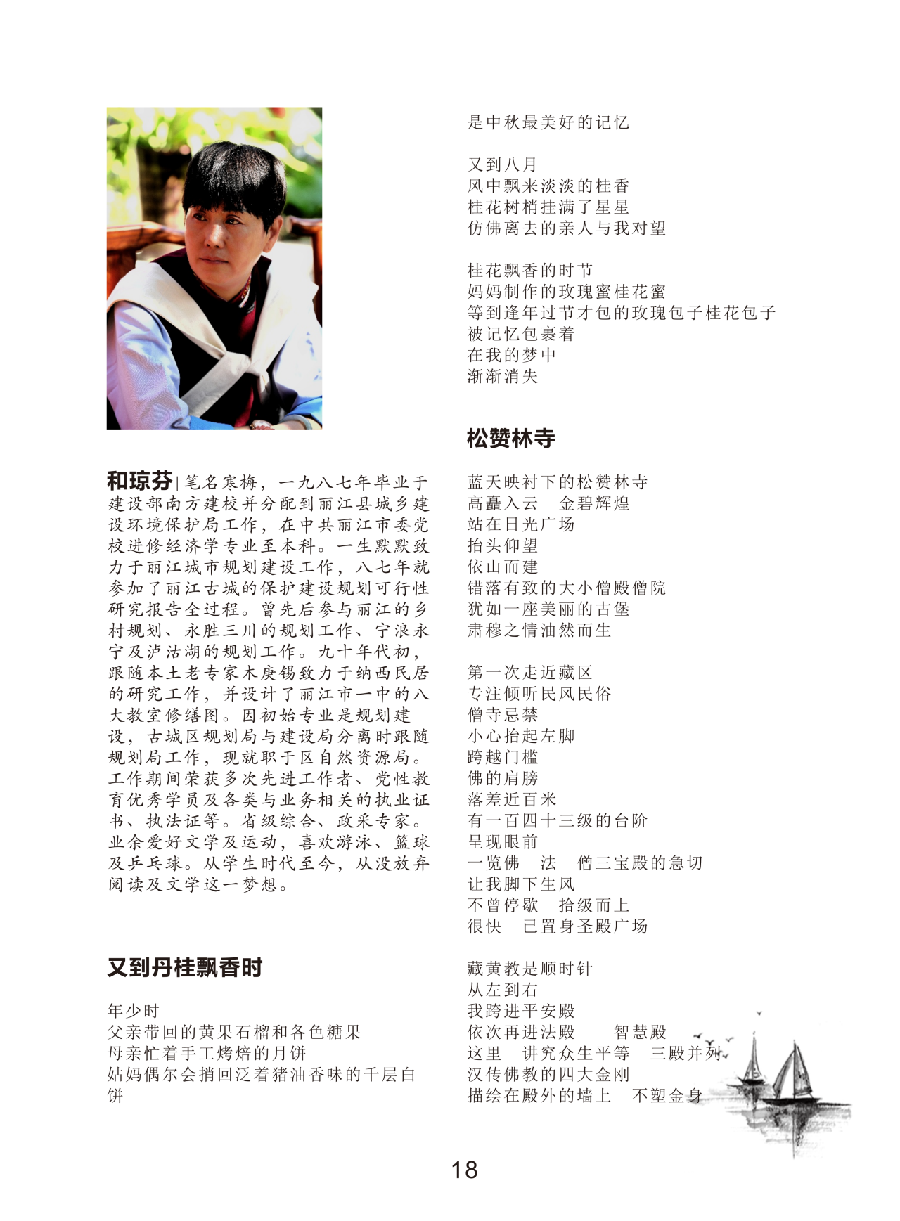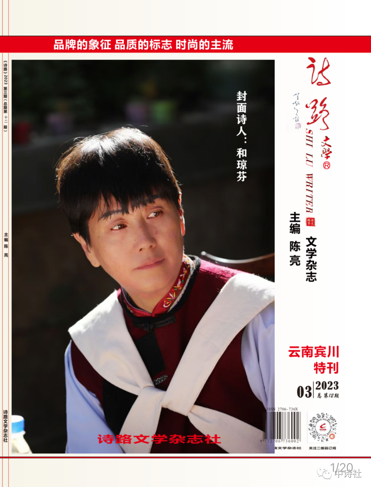 功夫不負(fù)有心人,2023年第三期的《詩路》雜志刊發(fā)了和瓊芬的四首詩歌,并將她的肖像照作為封面。麗江納西本土女詩人靈動的文字,得以讓更多愛好詩歌的人看到。