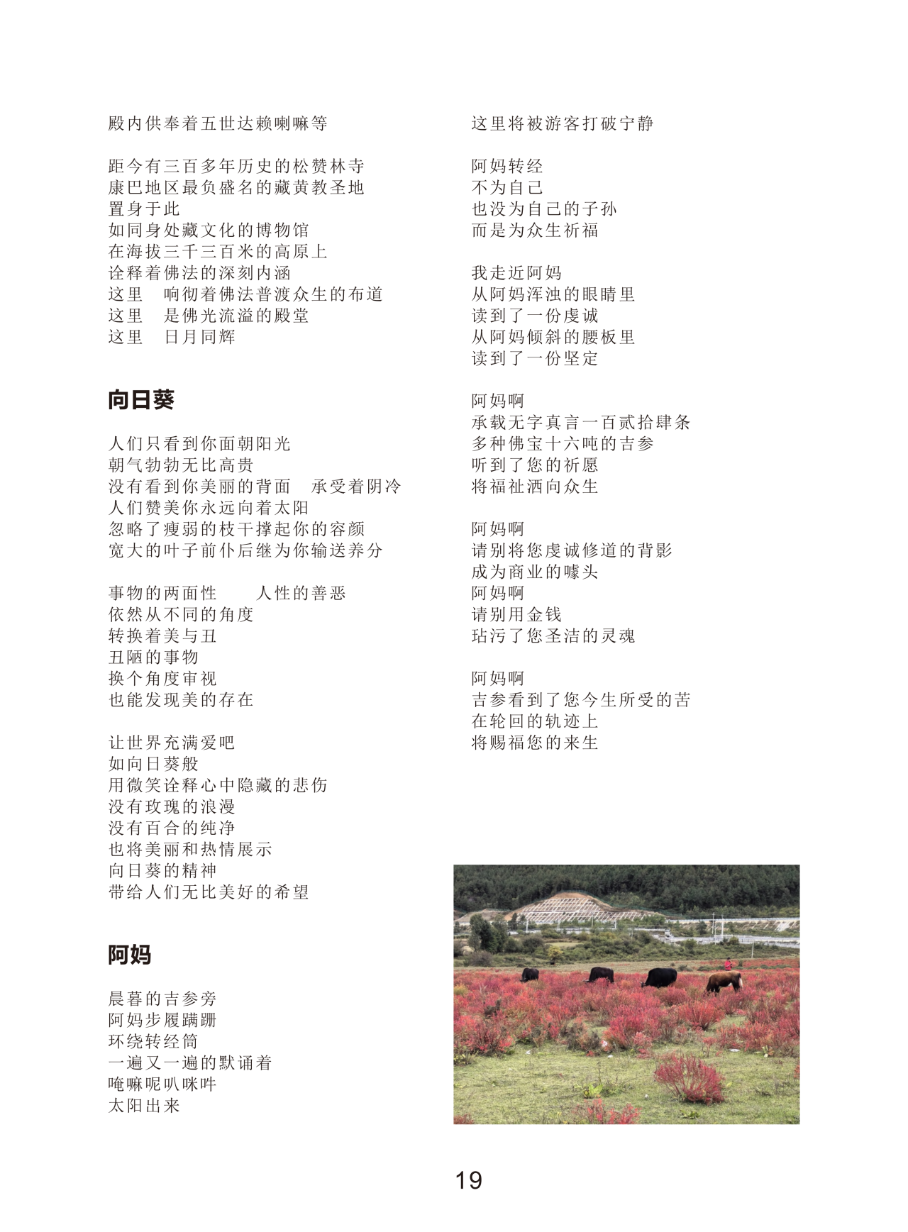 “創(chuàng)作的基礎(chǔ)來源于生活,所以生活環(huán)境、個人境遇、思想認(rèn)知的深度與廣度必然影響創(chuàng)作。而我出生在歷史文化底蘊(yùn)濃厚的麗江古城,加之自己學(xué)的是規(guī)劃專業(yè),長期從事規(guī)劃、城市建設(shè)工作,必須了解古城的歷史文化,所以我的創(chuàng)作帶有地域文化特征是必然的。寫詩我一直認(rèn)為牽強(qiáng)附會和刻意尋找靈感是大可不必的,對我而言,有感觸時我喜歡用簡潔的詩行記錄下生活的或悲或喜,所以創(chuàng)作素材并無特定的事物?!?/p>