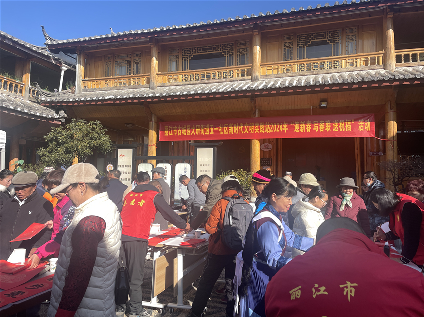 1月23日,古城區(qū)大研街道五一社區(qū)新時代文明實踐活站2024年“迎新春 寫春聯(lián) 送祝?!被顒优e行。