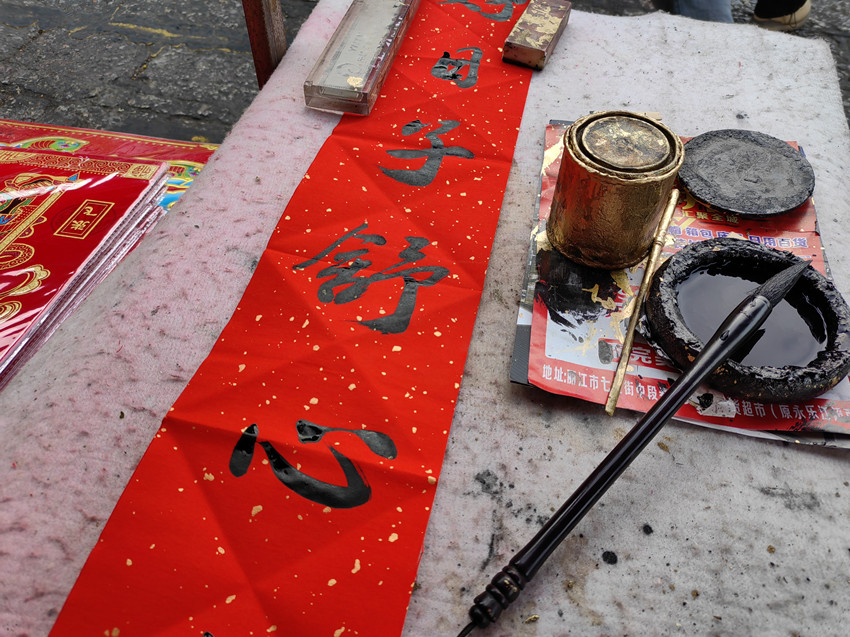 年貨的品種非常多,而在籌備年貨的過程中春聯(lián)是必不可少的,年貨一條街的春聯(lián)也成為熱銷品。據(jù)了解,除了一些顏色豐富、款式新穎的印刷春聯(lián)以外,一些具有傳統(tǒng)年味的手寫春聯(lián)也是很多人的首選。