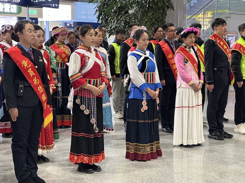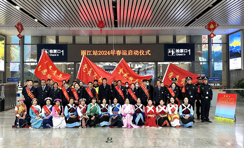 1月26日上午,麗江火車站2024年春運(yùn)啟動(dòng)儀式在站內(nèi)候車廳一樓舉行。相關(guān)部門負(fù)責(zé)人作春運(yùn)動(dòng)員講話,組織人員開(kāi)展春運(yùn)服務(wù)承諾宣誓,并向黨員突擊隊(duì)、金花服務(wù)隊(duì)舉行授旗儀式。