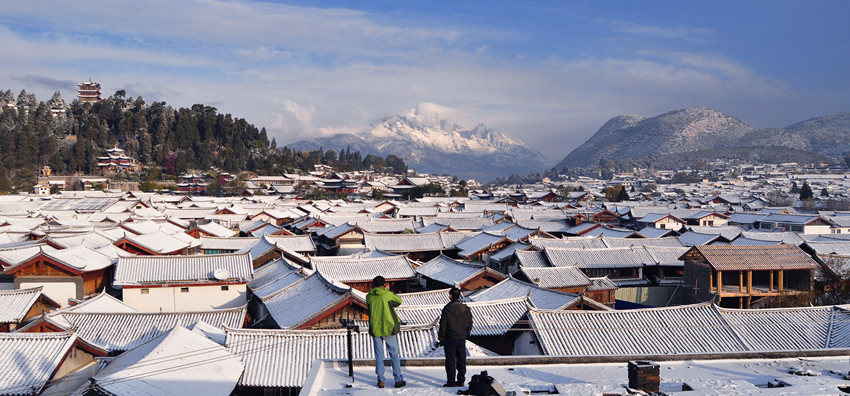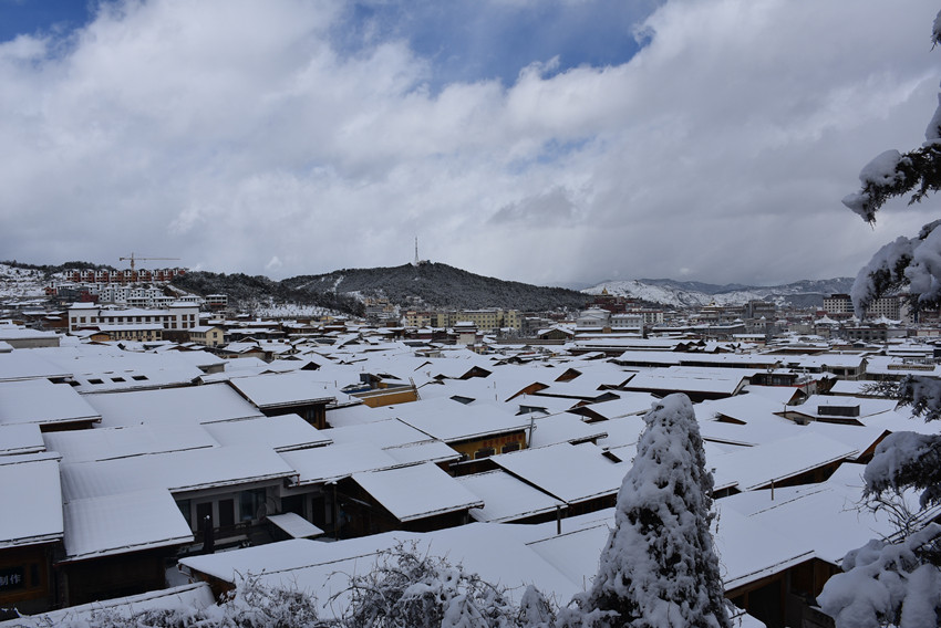 環(huán)繞大佛寺一周,雪山、古城盡收眼底。正如當(dāng)?shù)厝怂f(shuō),雪后的古城就像童話世界,那么潔凈,那么美,就像一個(gè)真實(shí)的夢(mèng)呈現(xiàn)在你眼前。