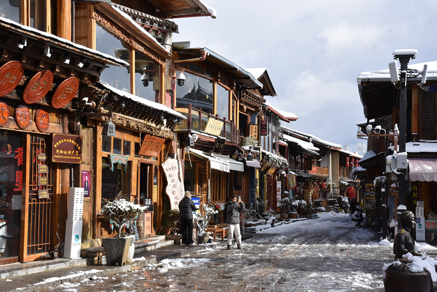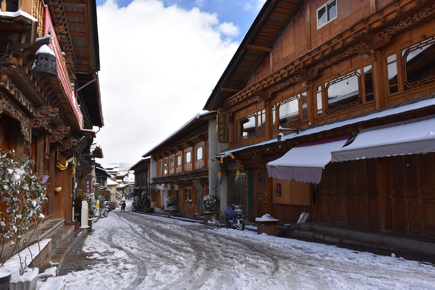 雪后初晴,走在古城中,兩旁是威嚴(yán)高聳的藏式民居,酥油茶的香味飄蕩在風(fēng)中,耳旁仿佛傳來(lái)了久遠(yuǎn)的馬幫鈴聲,又似乎是趕馬人聚在一起,拉著弦子,唱著古老的歌謠,仿佛時(shí)光從未流轉(zhuǎn),正從《消失的地平線》中走來(lái)。