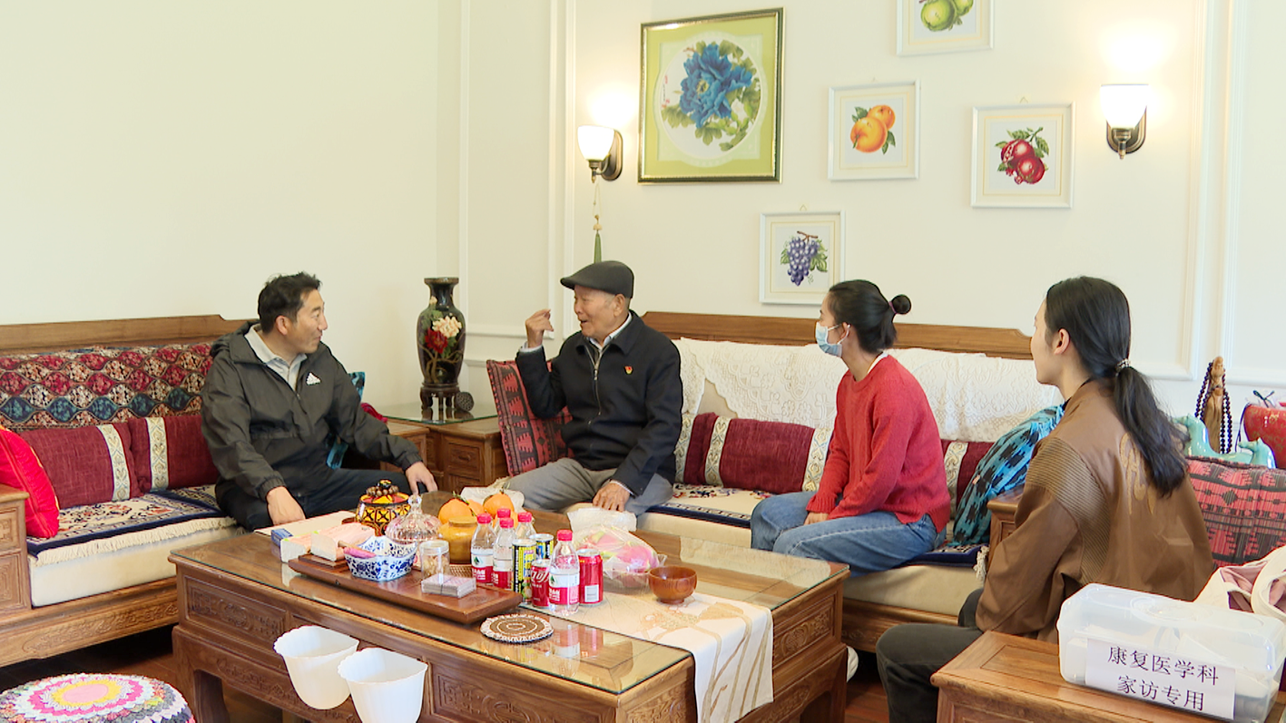 一番交流,得知老人經(jīng)過不斷的康復訓練后,如今可以自己散步、澆花水、做早點,楊秀海和同事都很高興。當天,他們還為老人檢查了血壓、血糖,并根據(jù)他的情況,制訂了一套適合居家鍛煉的方法。