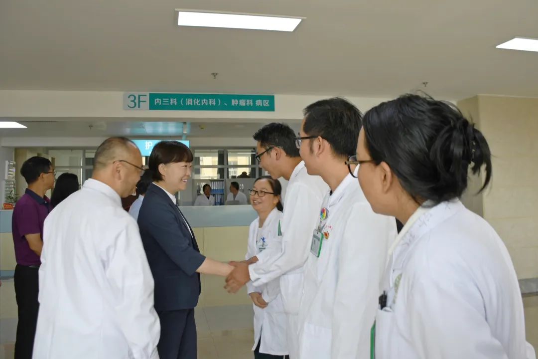 作為“編外院長(zhǎng)”,浦虹帶頭履行職責(zé),來(lái)到掛鉤聯(lián)系的市醫(yī)院開(kāi)展專題調(diào)研,詳細(xì)了解醫(yī)院發(fā)展規(guī)劃、醫(yī)療服務(wù)、學(xué)科發(fā)展、人才隊(duì)伍建設(shè)等情況,與有關(guān)專家和醫(yī)務(wù)人員深入交流,感謝大家的辛勤付出,祝大家節(jié)日快樂(lè)。她說(shuō),近年來(lái),市醫(yī)院建設(shè)發(fā)展成效顯著,為全市衛(wèi)生健康事業(yè)發(fā)展作出了積極貢獻(xiàn)。希望全體醫(yī)護(hù)人員始終堅(jiān)持人民至上、生命至上理念,秉持醫(yī)者初心使命,以精湛的醫(yī)術(shù)、崇高的醫(yī)德、優(yōu)良的醫(yī)風(fēng),為人民群眾提供更加優(yōu)質(zhì)高效的健康服務(wù)。