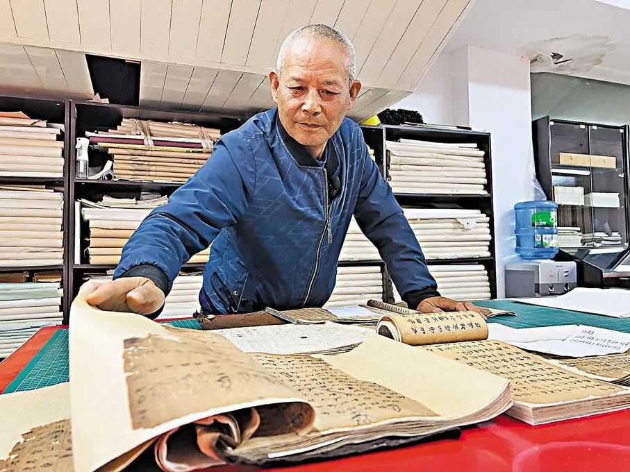 楊利群出生在一個古籍修復(fù)世家,父母都曾從事古籍修復(fù)工作,他從七八歲就開始跟著父母修復(fù)古籍、書畫。至今經(jīng)他修復(fù)過的古籍不計(jì)其數(shù),他謙虛地自稱“面糊匠”。