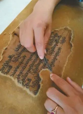 處于修復(fù)過程中的“納格拉洞藏經(jīng)”