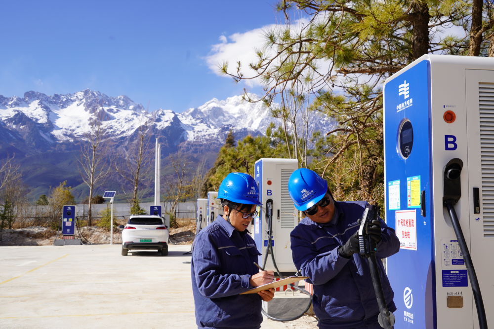 南方電網(wǎng)云南麗江供電局開展充電設(shè)施維護檢查。(供圖)