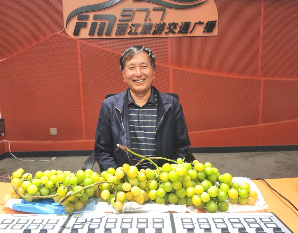 10月14日下午,玉龍縣大具鄉(xiāng)葡萄種植大戶單治福做客麗江旅游交通廣播。(供圖)