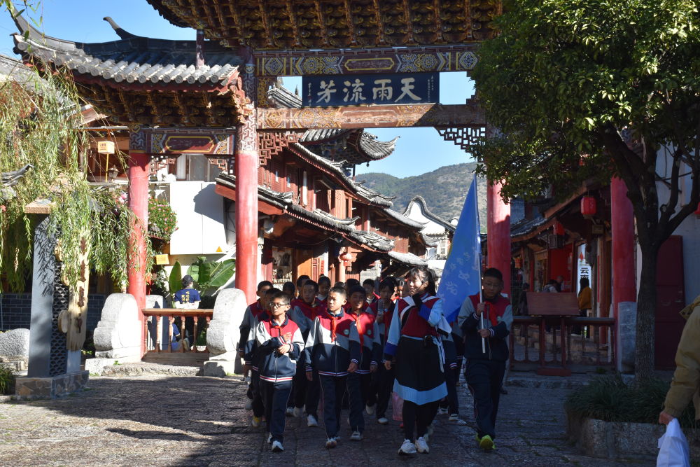 白沙中學(xué)學(xué)生游覽麗江古城。(麗江融媒記者 楊四娟 攝)