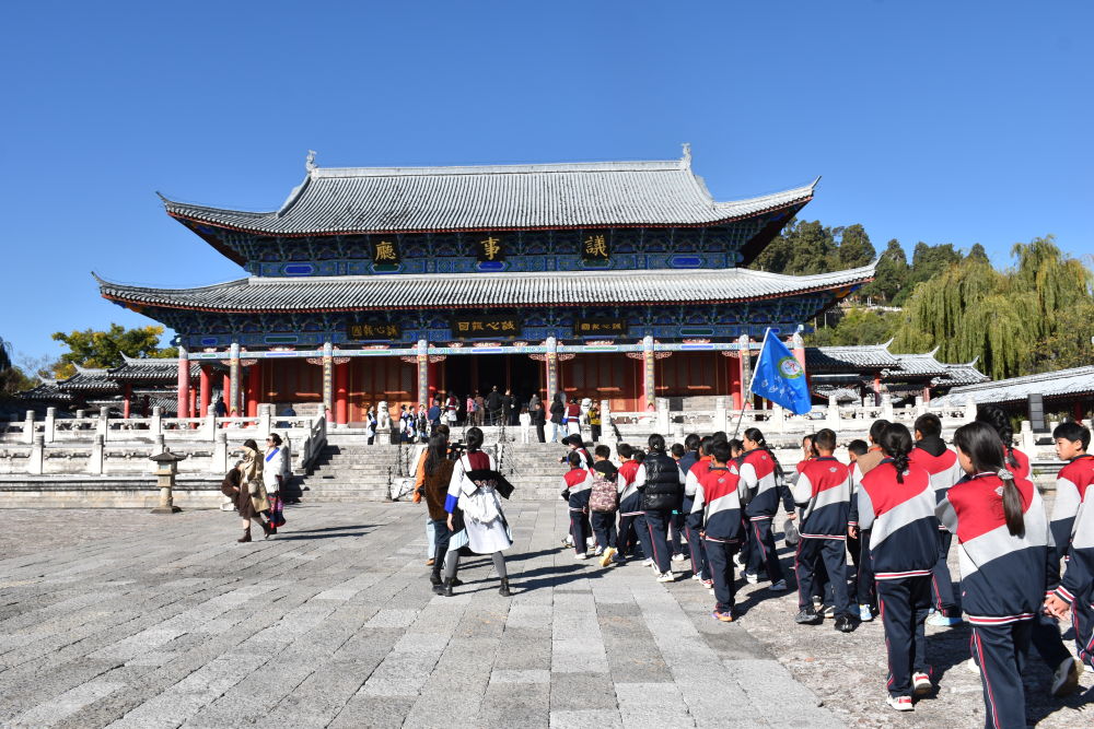 白沙中學(xué)學(xué)生游覽麗江古城博物院(木府)。(麗江融媒記者 楊四娟 攝)